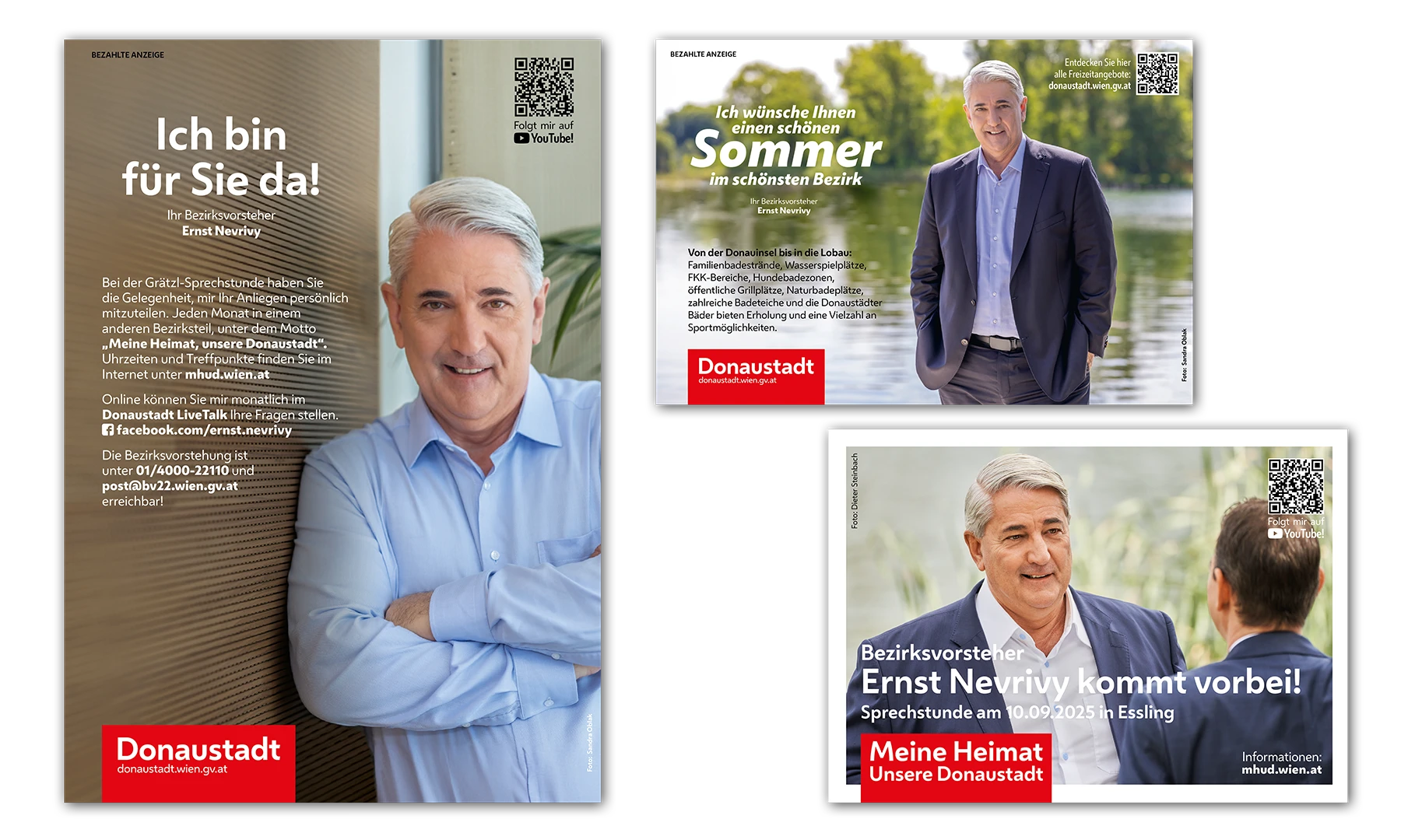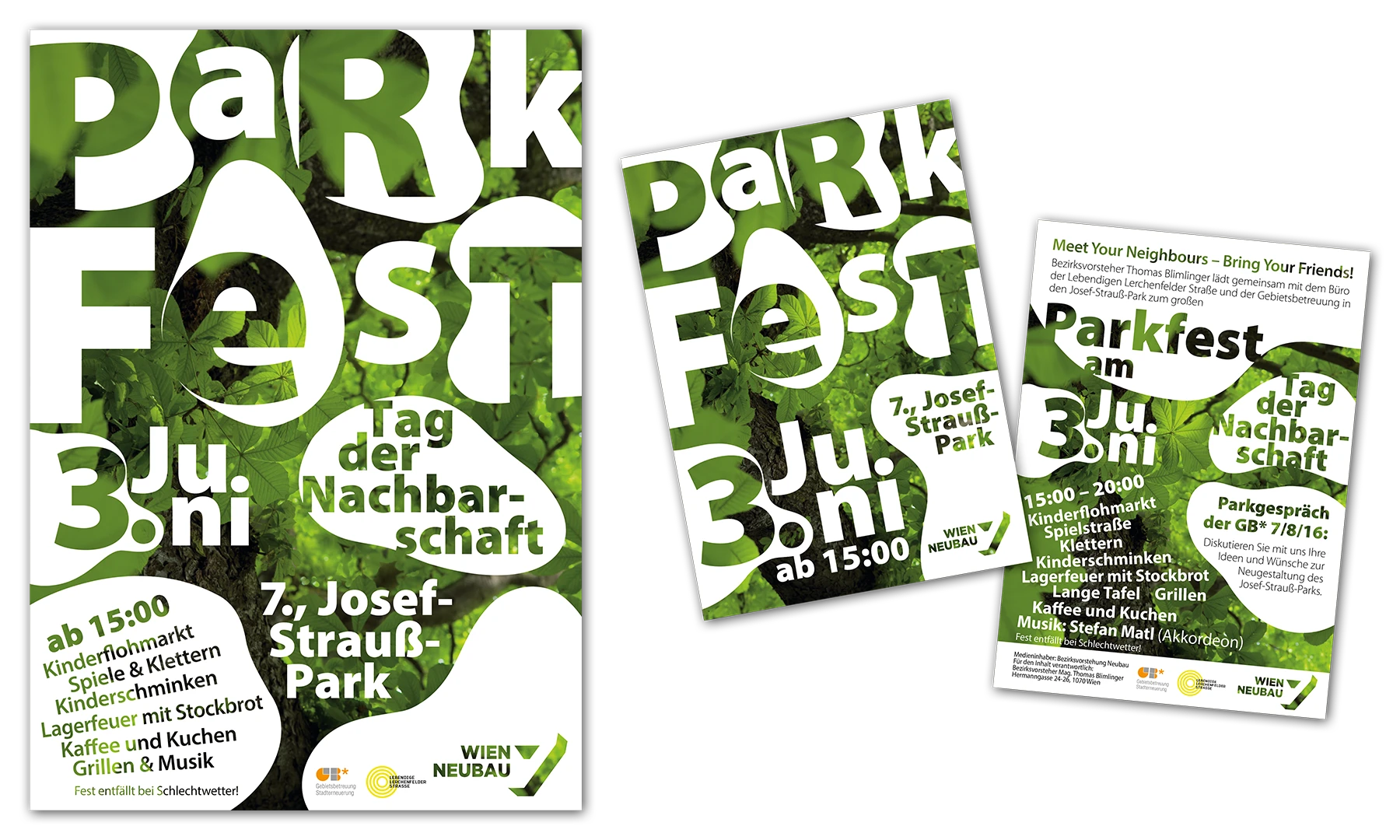 Sämtliche Inserate, Flyer, Plakate, Bühnenhintergrund, …